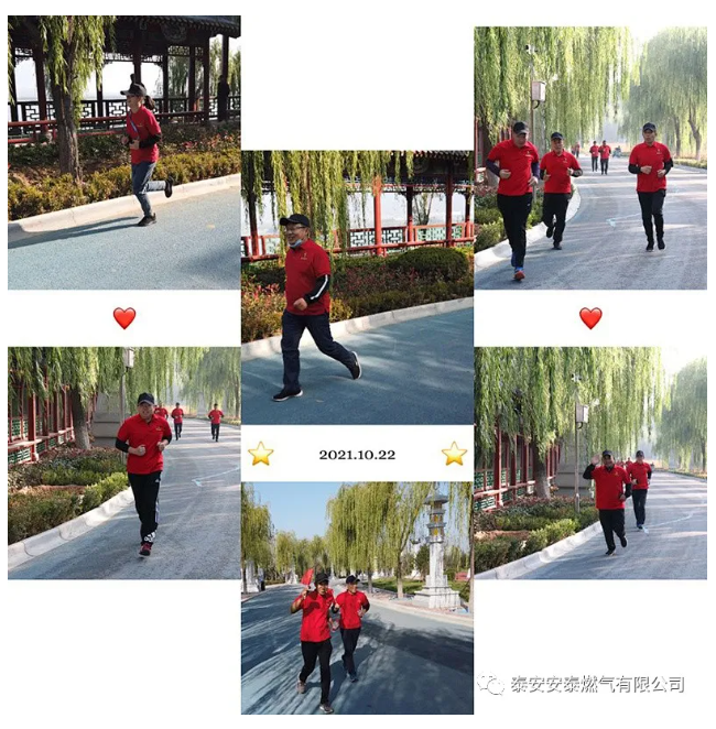10月22日上午,泰安安泰燃?xì)庥邢薰尽皹放芪骱そ】敌小被顒蛹で殚_跑,來自公司的近30名干部職工歡聚泰安西湖景區(qū),用汗水揮灑激情,以拼搏篤定前行,通過健跑方式汲取奮進(jìn)力量。泰山玻纖黨委委員、副總經(jīng)理、安泰燃?xì)舛麻L趙恒剛參加本次活動。