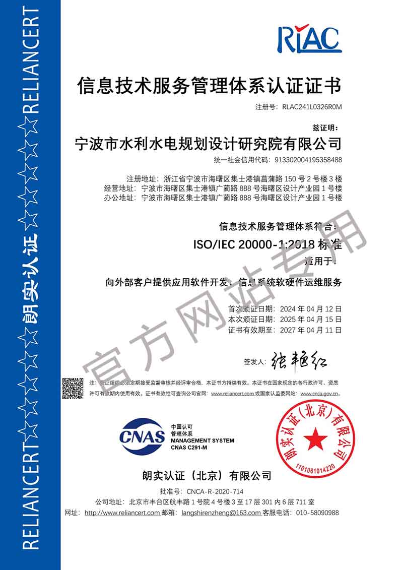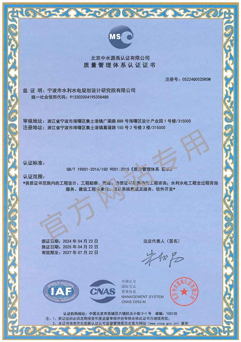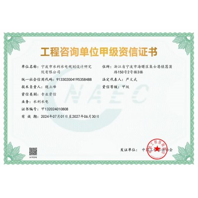 寧波院具有水利水電工程設計、工程勘察、工程咨詢、水土保持、水資源論證等多項資質(zhì)。承擔中小河流域規(guī)劃、水庫、河道整治、灘涂圍墾等工程的勘察、設計、咨詢、總承包業(yè)務,以及各領域建設項目的防洪評價、水資源論證、水土保持方案編制、水土保持監(jiān)測、計算機行業(yè)CMMI 3級認證、知識產(chǎn)權(quán)管理體系認證等。
